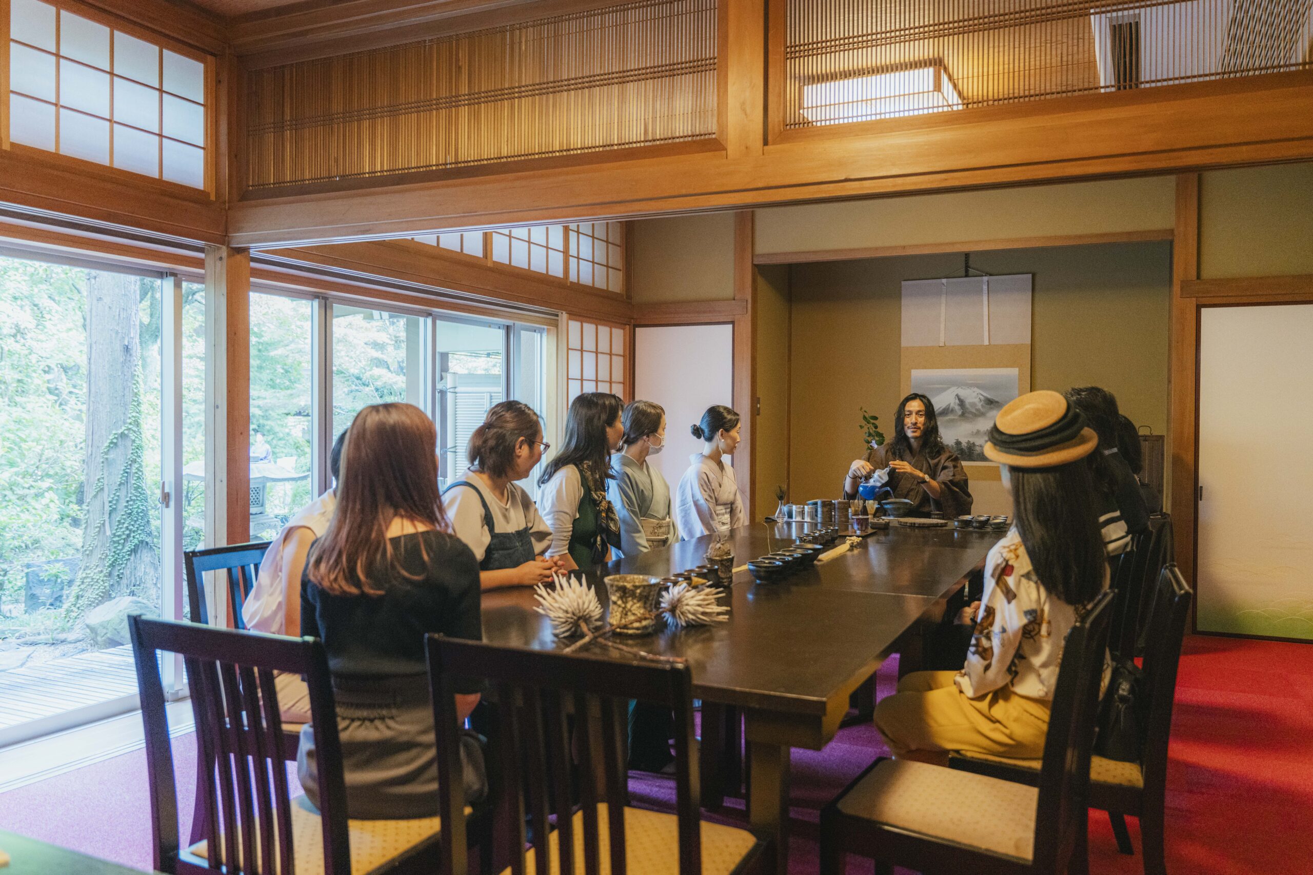 障子越しに朝の光が差し込む中でいただいたその一服は、思いがけない朝茶となり、心が洗われるような清々しさをもたらしてくれました。それは、ただ茶を供すということに留まらず、場の気配と人の心を汲みとり、自然と交わるようにして生まれるおもてなしの姿。孔人氏の茶に宿る精神、その真髄がまさにここにあると感じられる一瞬でした。