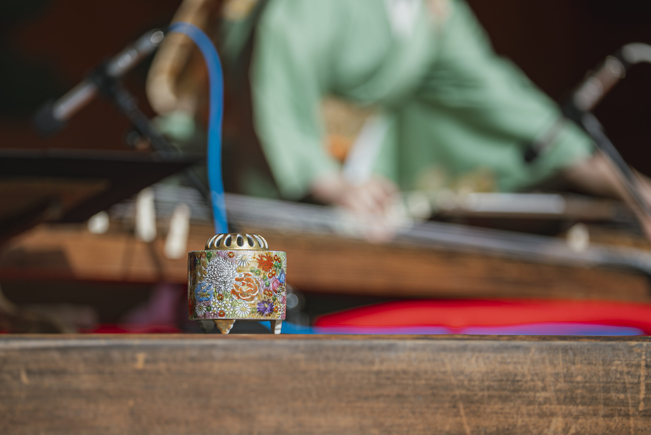 また、この箏の時間にそっと寄り添うように、舞台には香司の方が香炉を静かに置き、お香を焚いてくださいました。