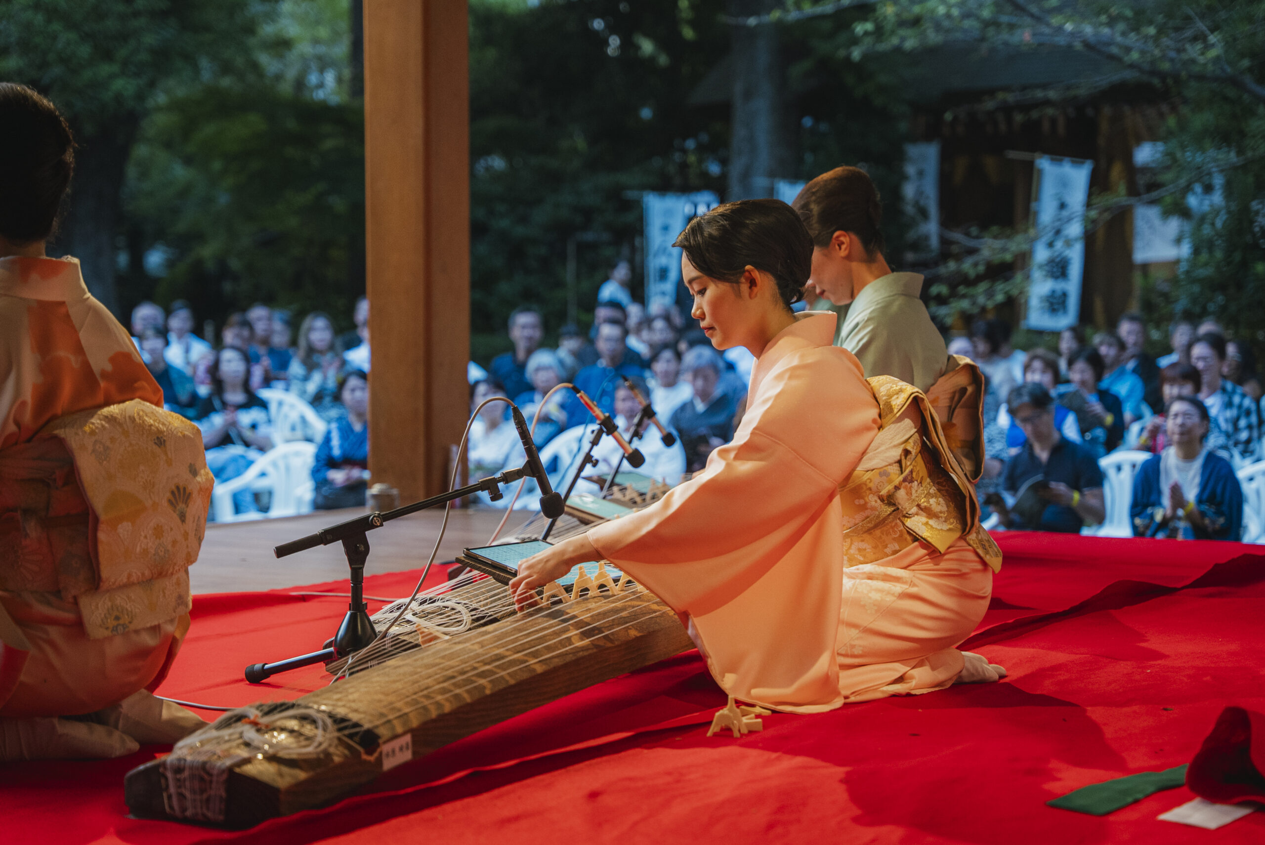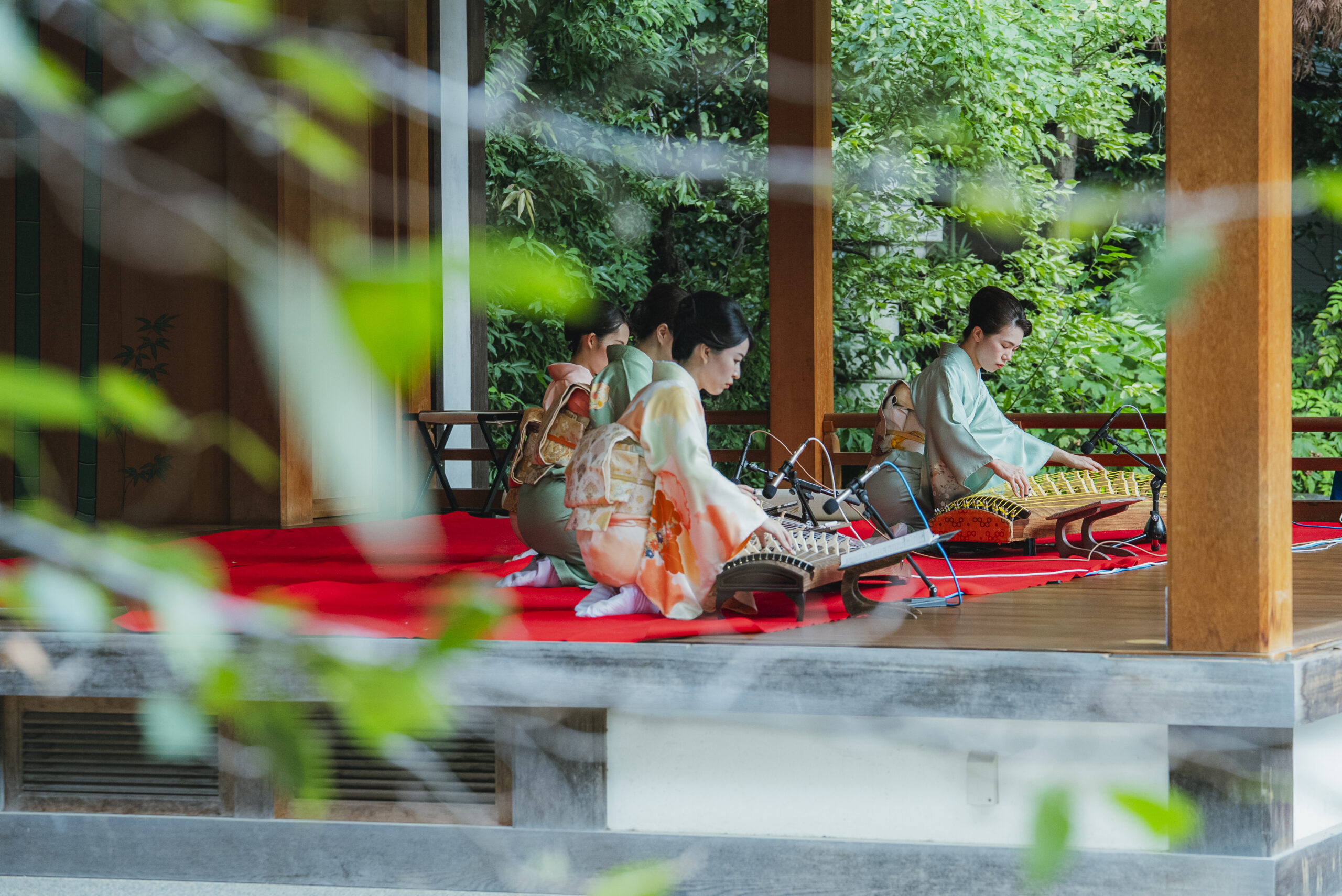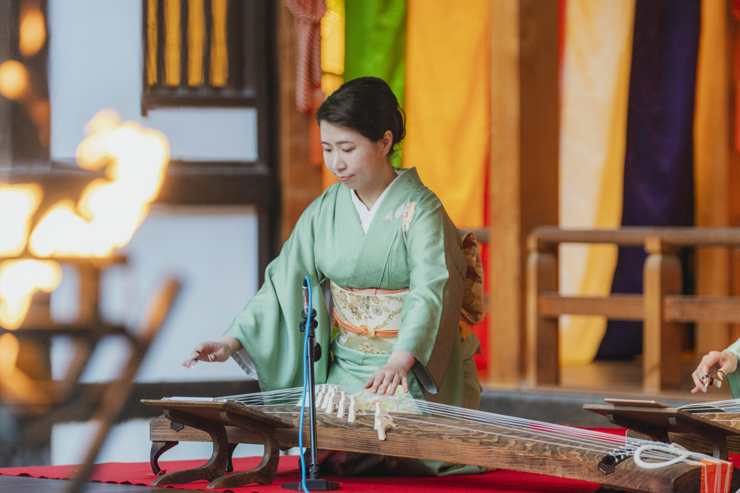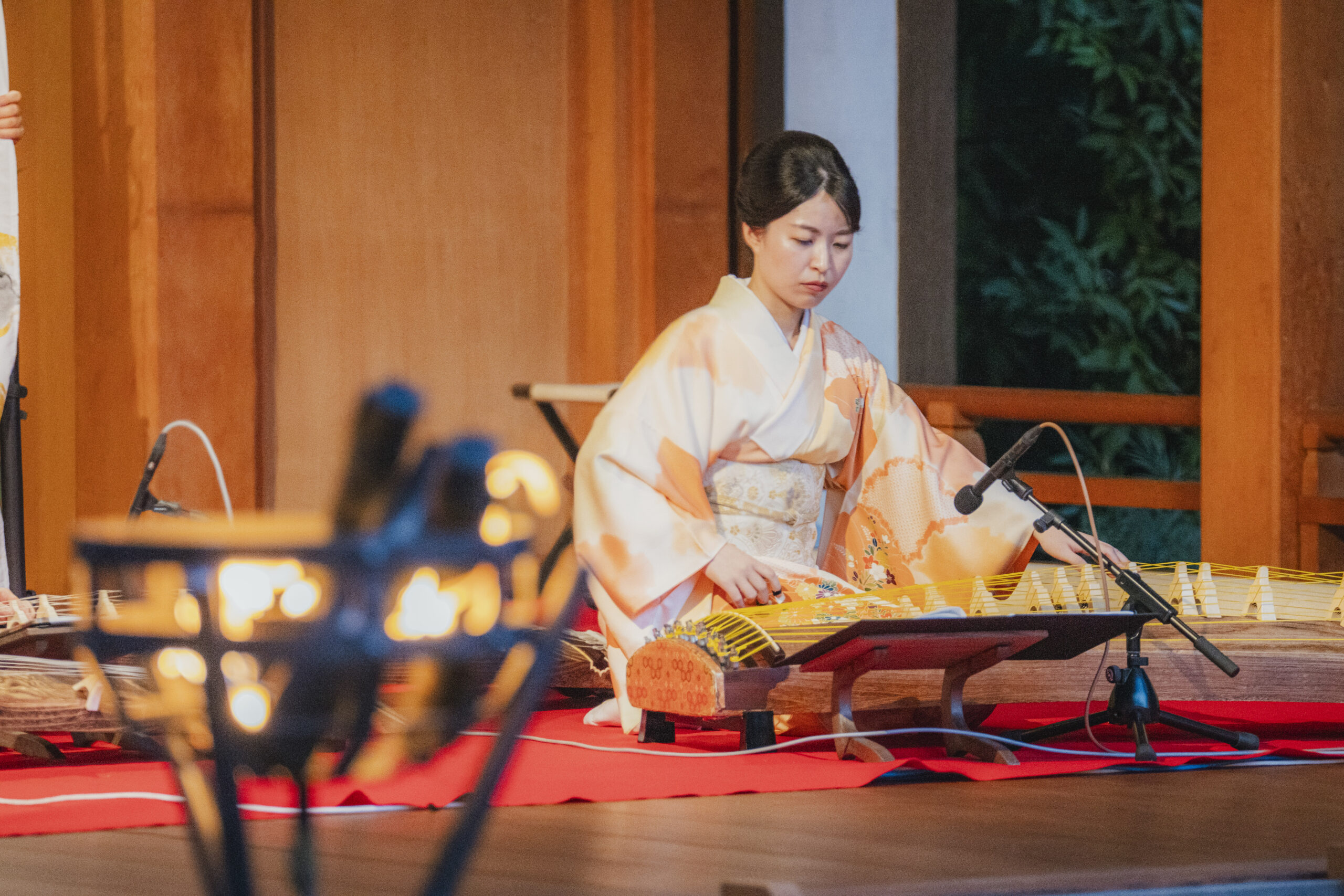 ほのかにたなびく香煙が箏の音に重なり、空間に静けさと奥行きを与えていきます。