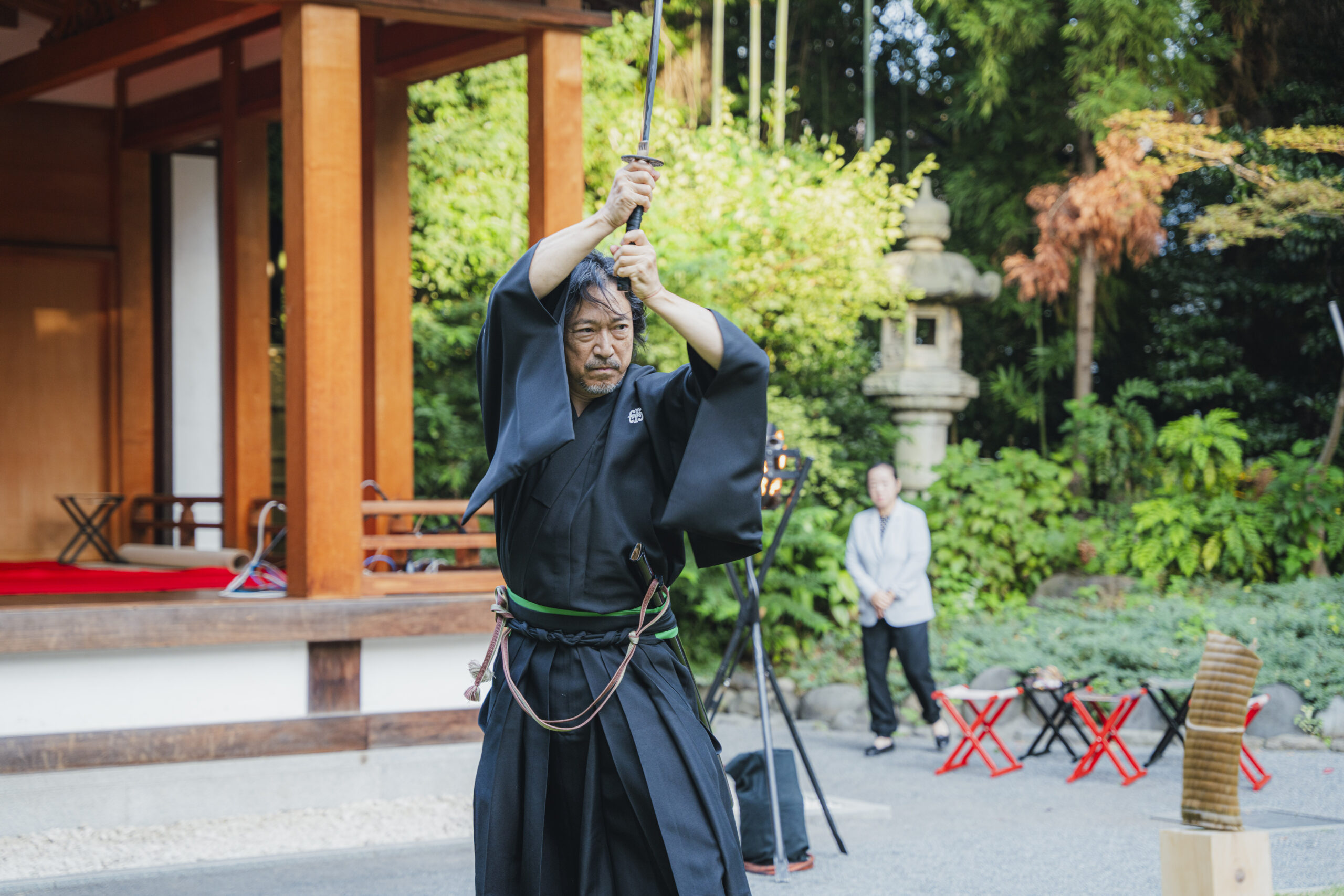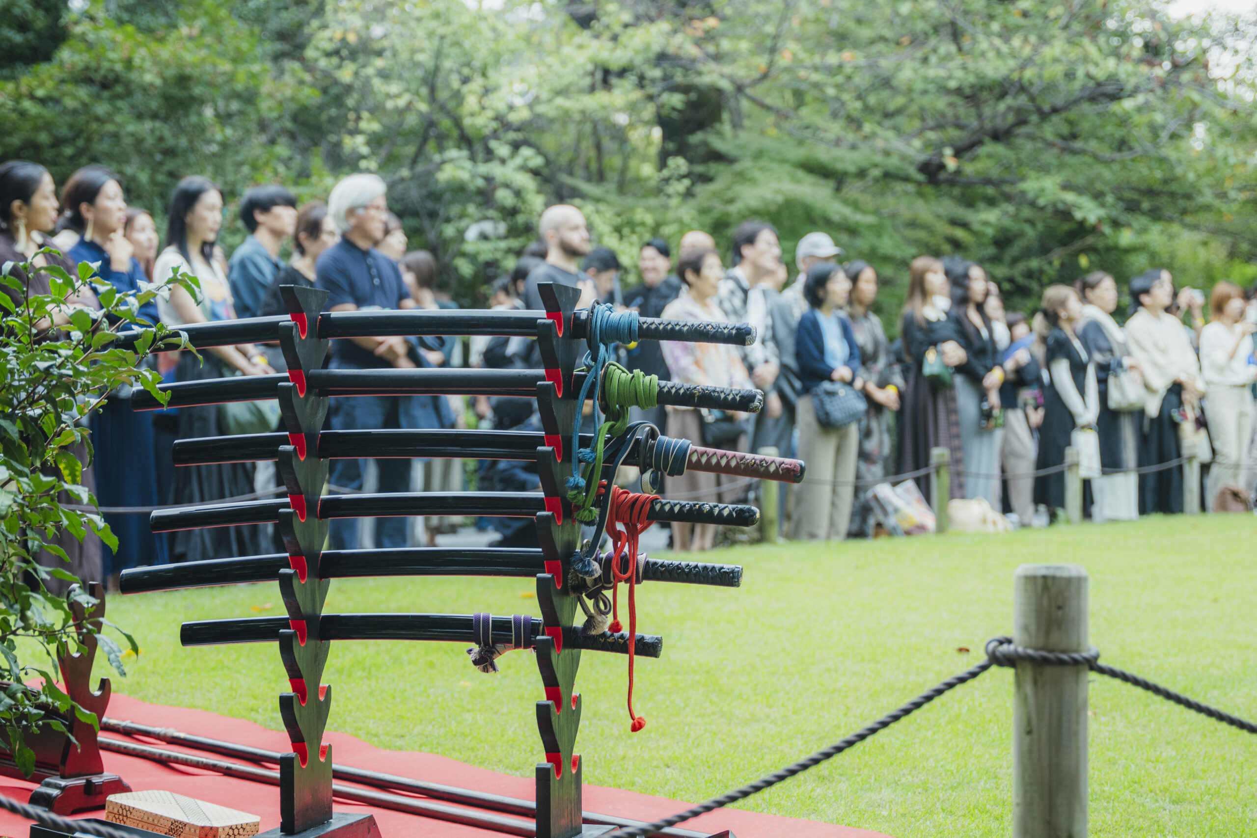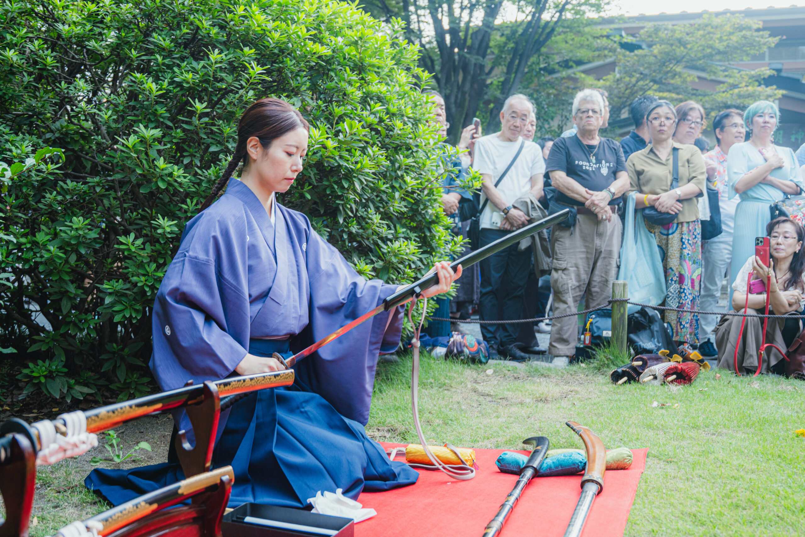 箏の響きとともに始まるひととき。茶の香、墨の息吹、そして御刀の輝き。