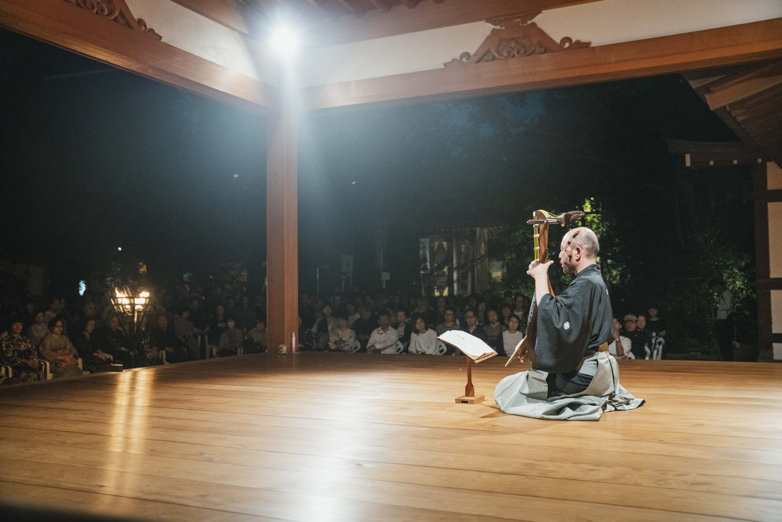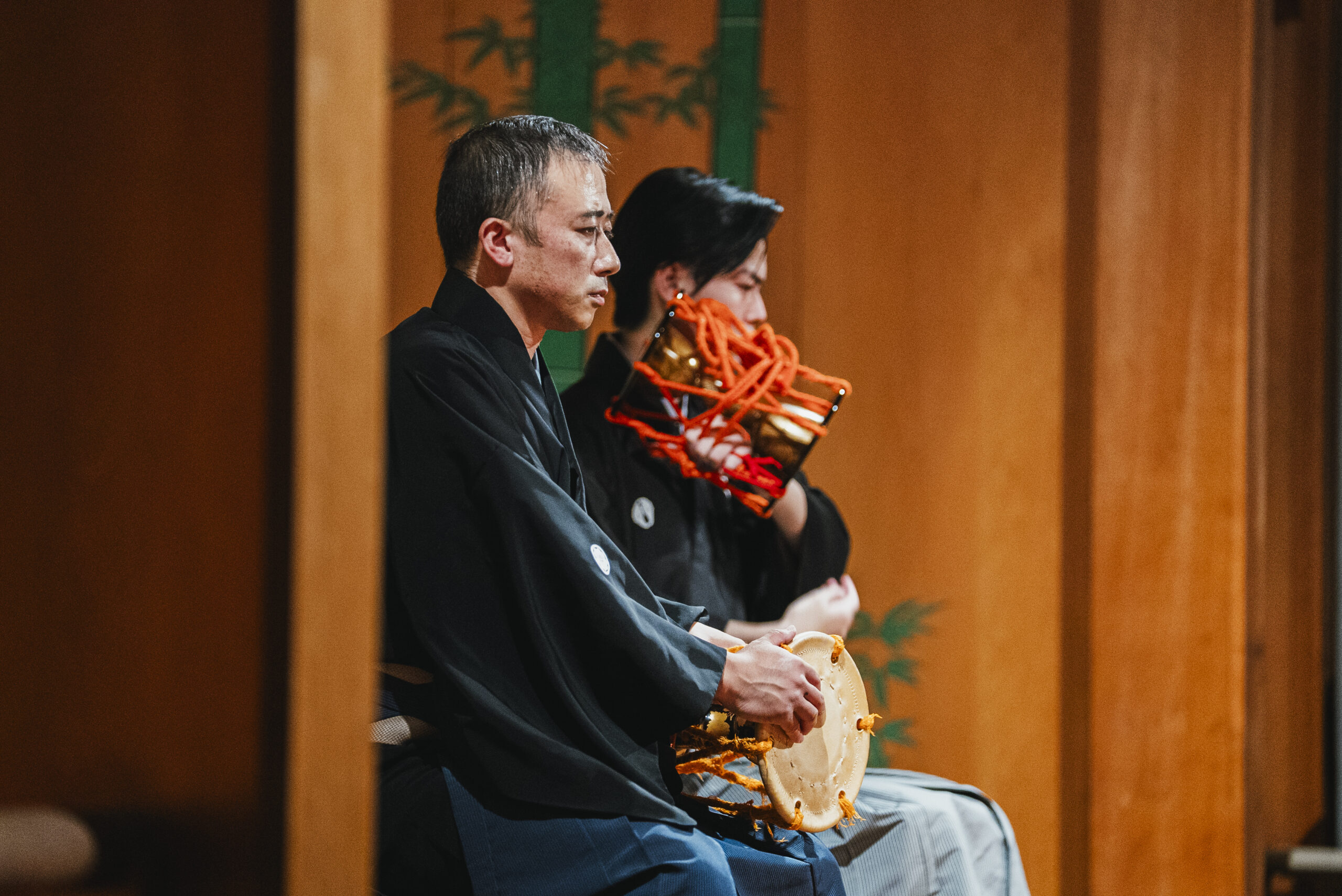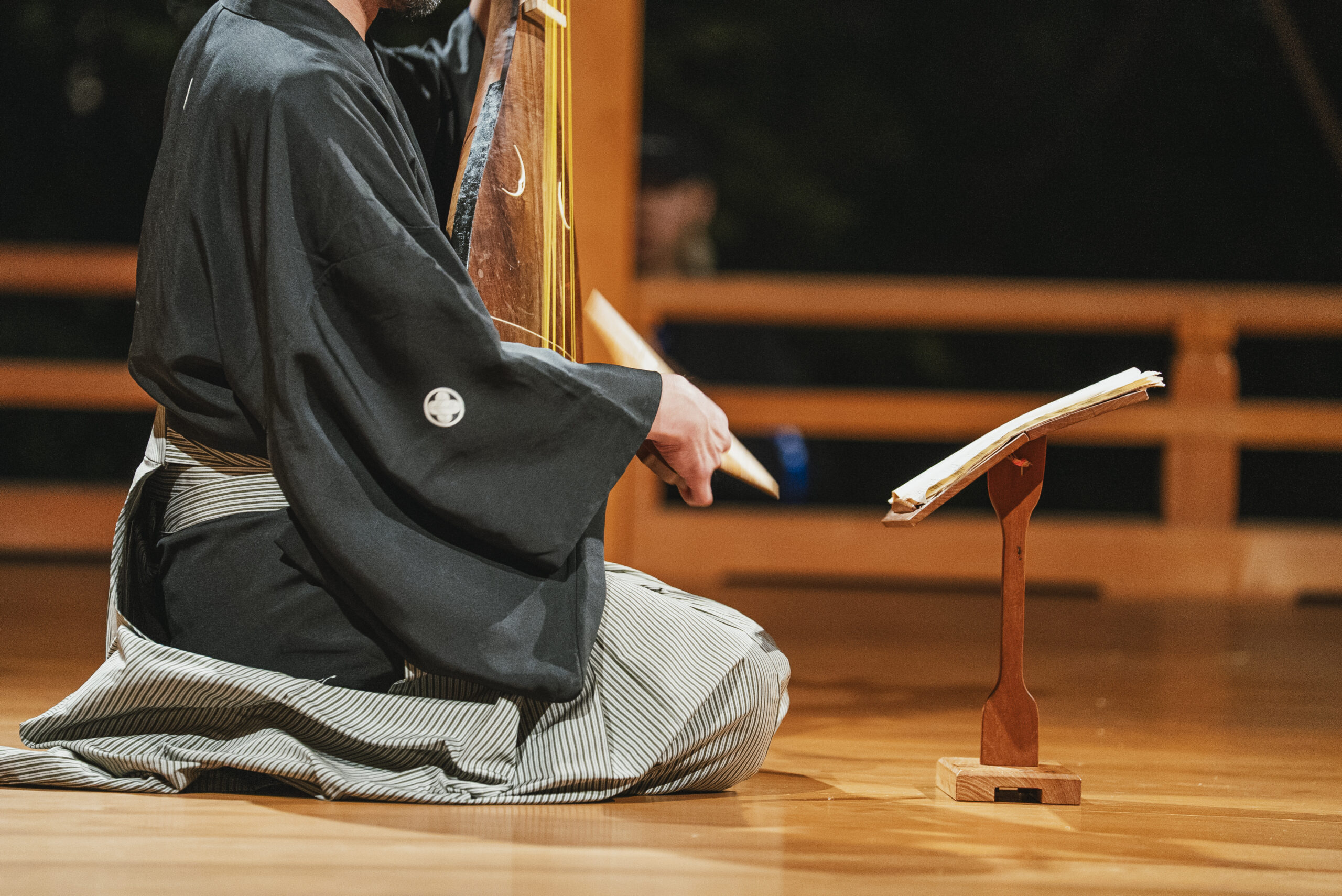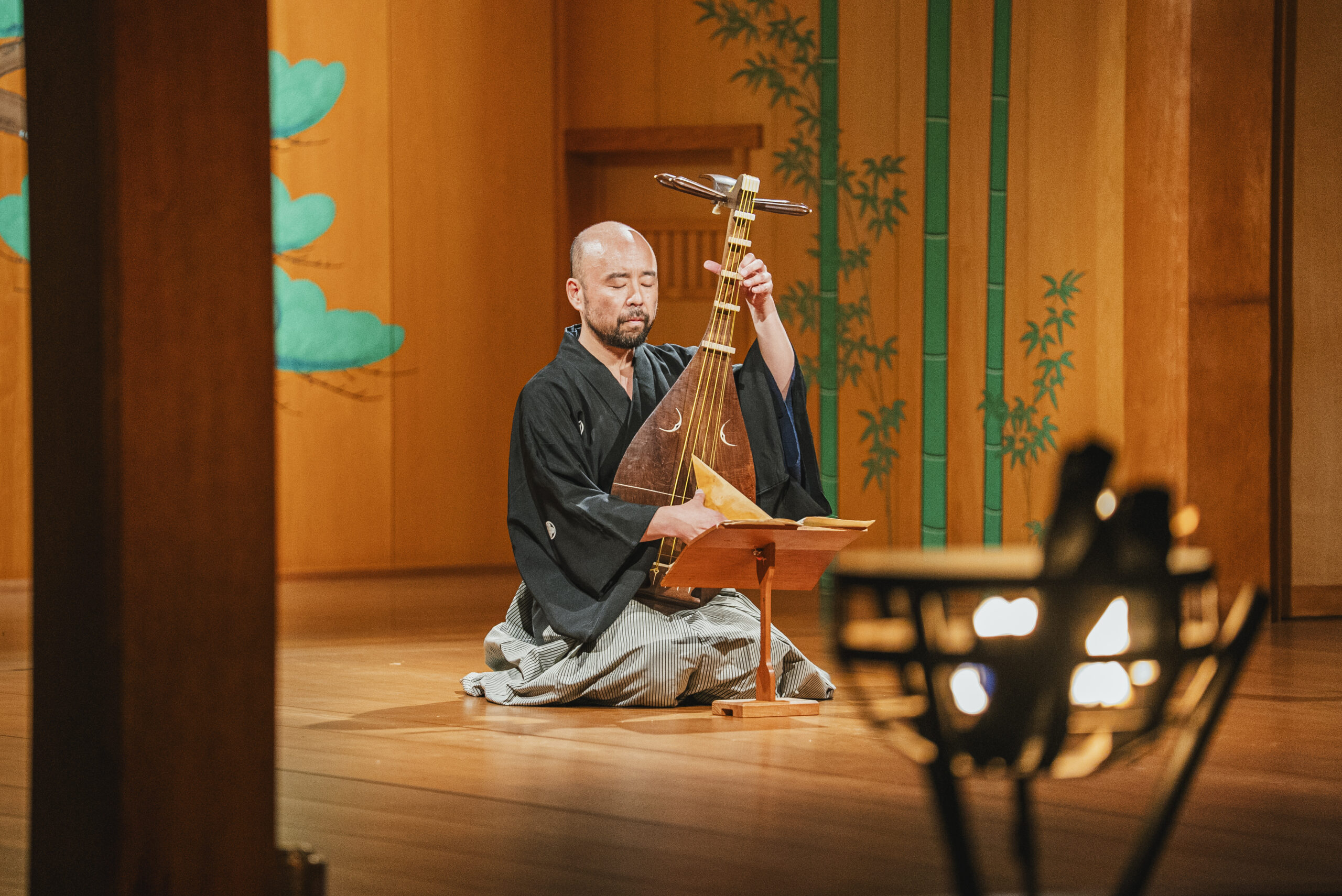 一ノ谷の戦いで討たれた若武者・平敦盛の最期が、低く力強い語りと、木の撥が生む深い音色にのせて紡がれ、観客の胸に静かに沁みていきました。