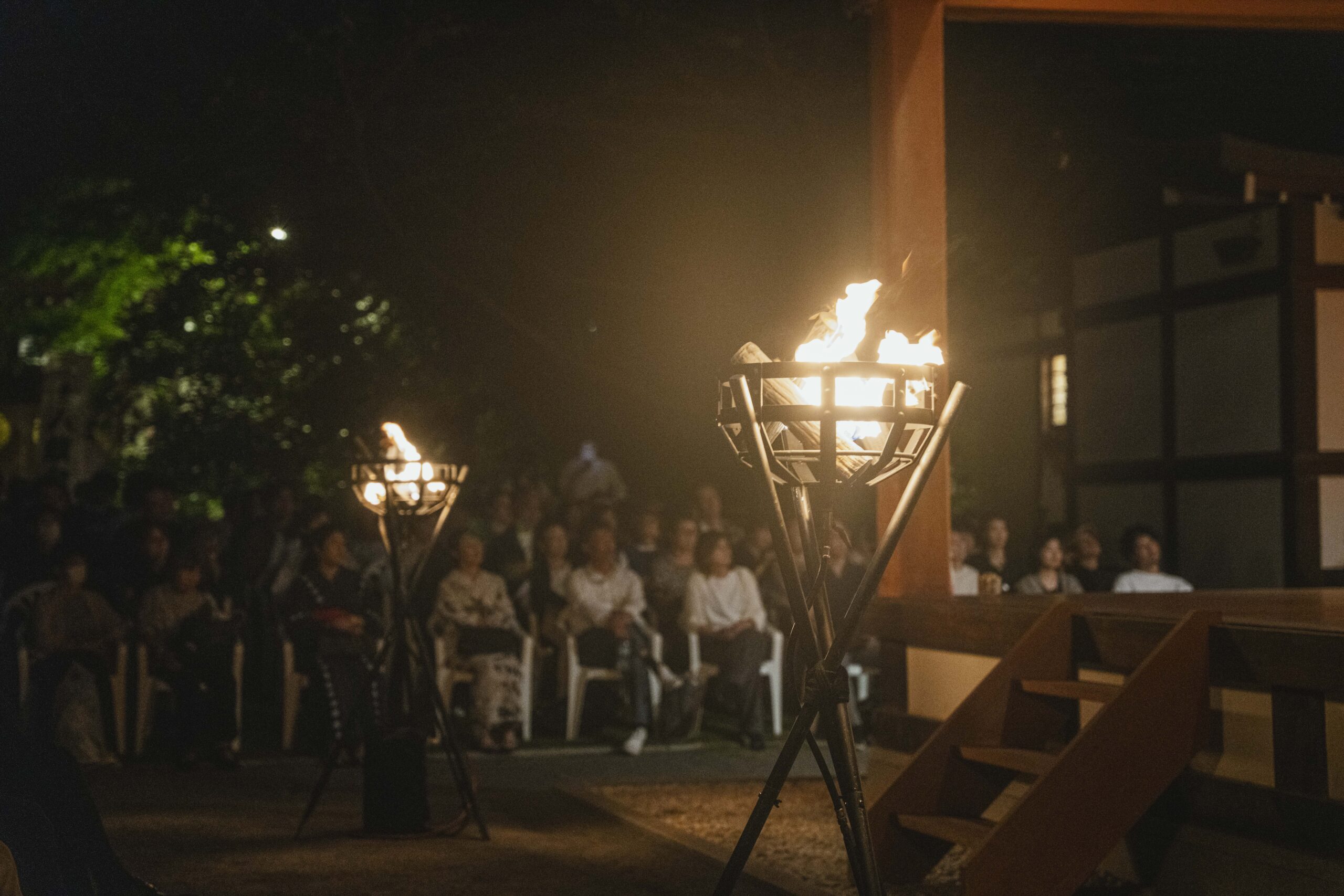 当日は、500名近くの皆様にお運びいただき、静謐なる神域にともる薪の灯のもと、多くの方々とこのひとときを分かち合えたことは、私たちにとって何よりの喜びでございます。
